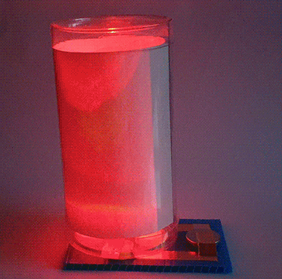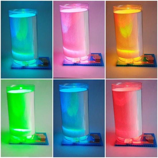 바닥판에 투명통을 올려놓으면 켜집니다